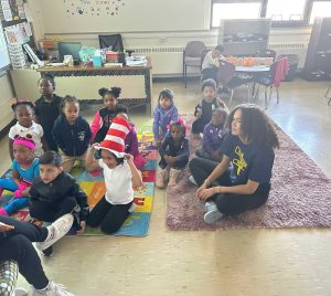 Student-athletes from 6 different teams read to elementary school students in conjunction with National Reading Month (March). Women’s soccer, field hockey, gymnastics, softball, volleyball, and cheerleading)